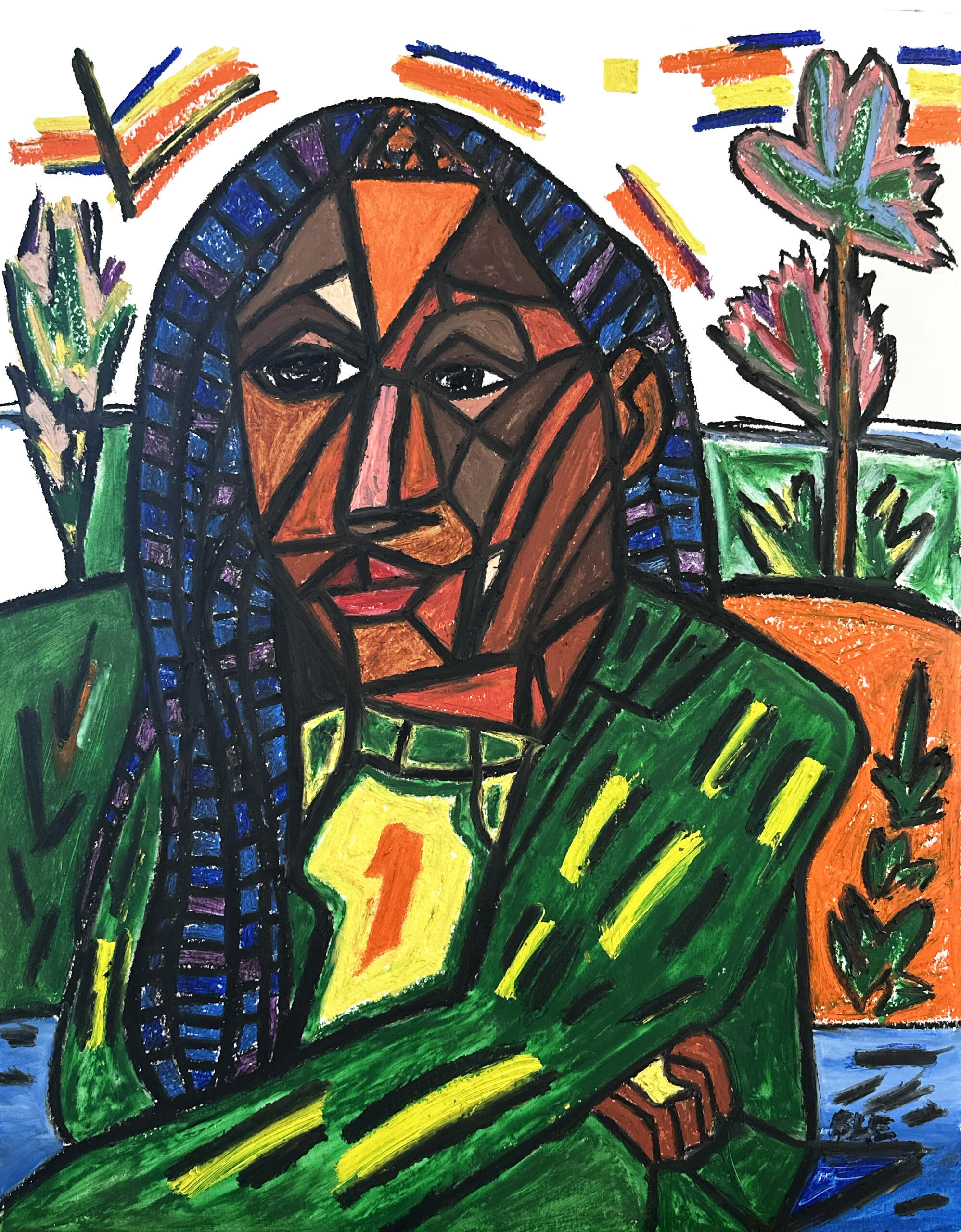 King (2021, Oil pastel on canvas, 48 × 36 in., Private Collection)