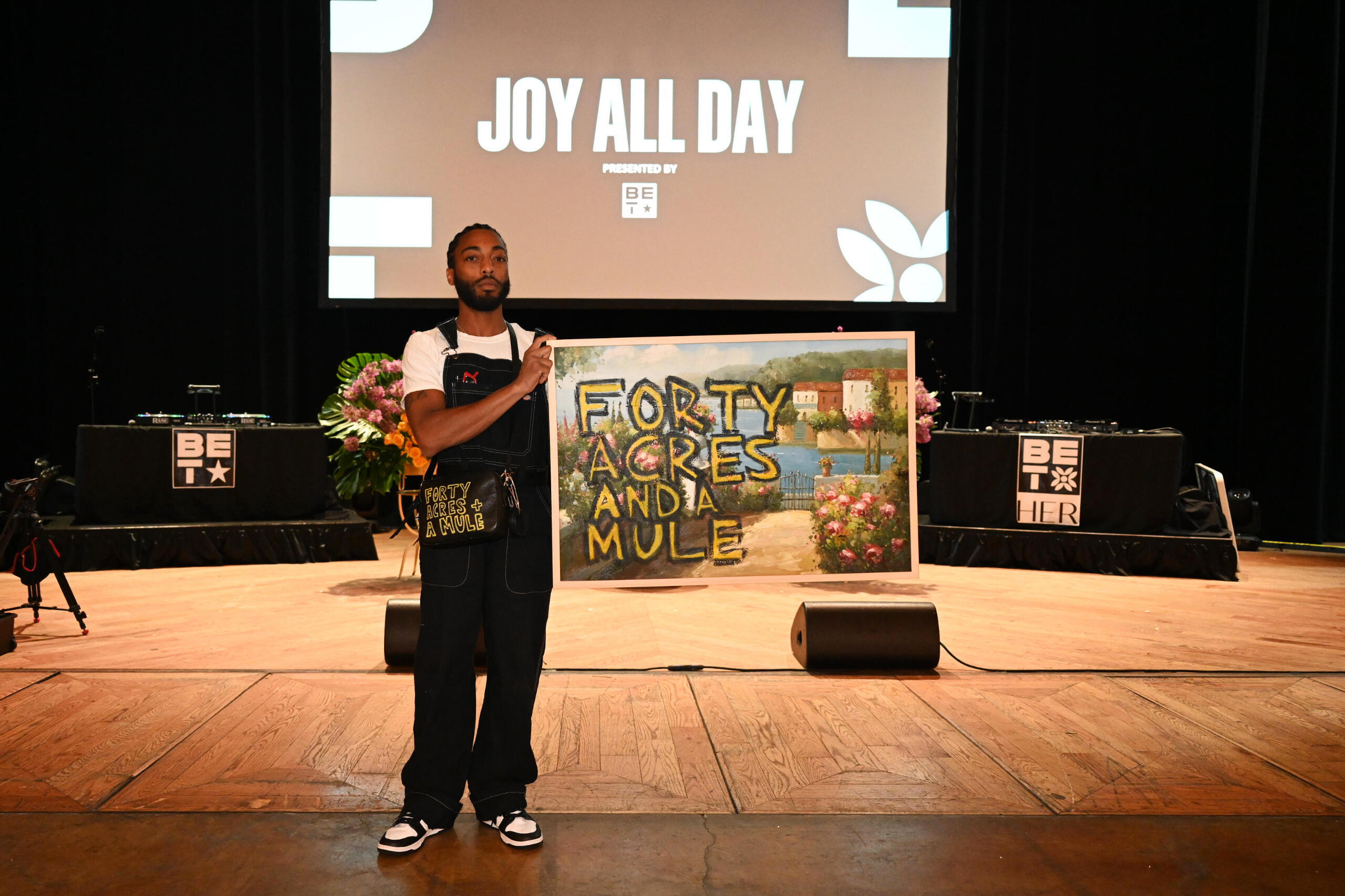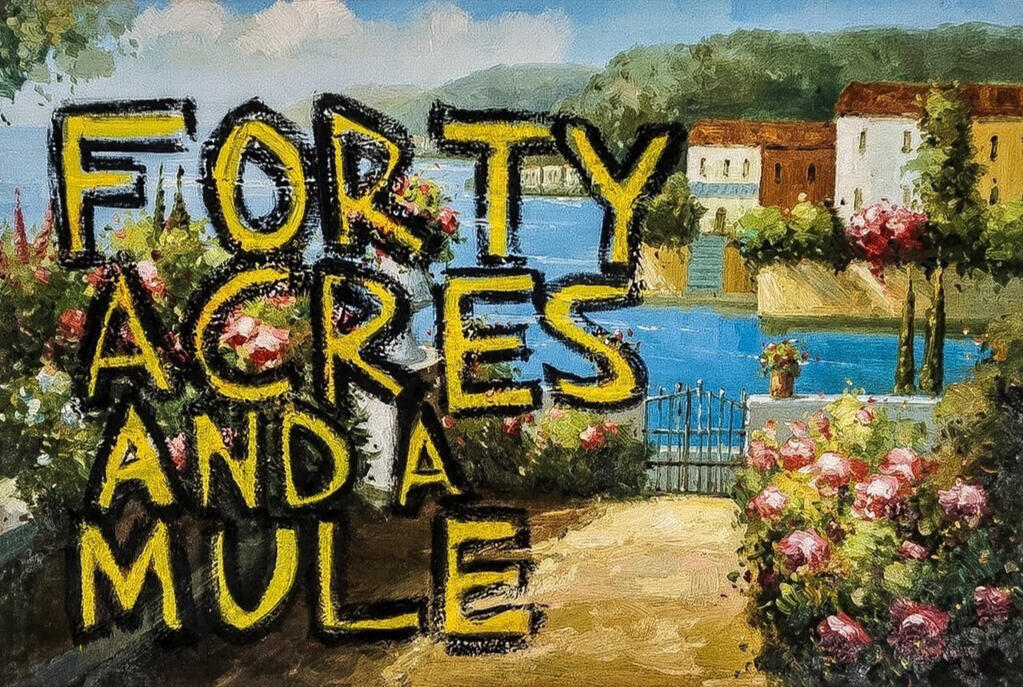 Forty Acres and a Mule (2021, Oil & acrylic on canvas, 34 × 20 in., Private Collection)
